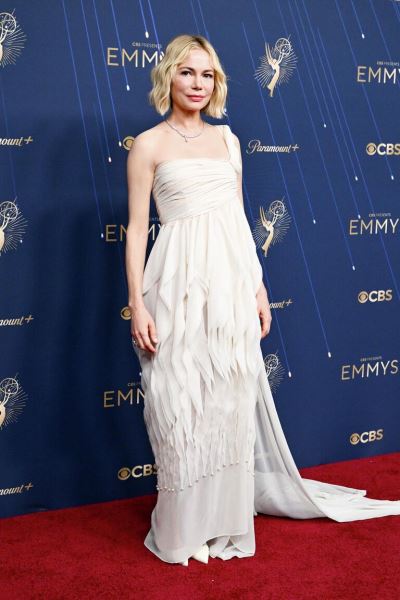 Мишель Уильямс — четырехкратная номинантка на "Оскар", а на телевидении прославившаяся ролью Гвен Вердон (мини-сериал "Фосси/Вердон"), появилась в винтажном платье Chanel цвета слоновой кости. Одно плечо было элегантно прикрыто драпировкой. Акцентом стал знаменитый бриллиантовый кулон Chanel № 5 вокруг шеи актрисы. Уильямс выглядела столь же изысканно, как голливудские гранд-дивы прошлого, и неудивительно, что ее образ вошел во многие списки лучших нарядов вечера.