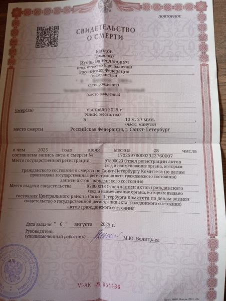 © Фото предоставлено Игорем БайковымВ августе Игорь решил подписать контракт и пойти служить в зону СВО. Но из-за проблем с документами командировку пришлось отложить. «Даже нотариальную доверенность на юриста я не могу оформить, ведь по паспорту я — труп», — иронизирует Игорь.Рассказ Байкова пронизан черным юмором. Говорит, так легче принять ситуацию.«Умер я шестого апреля. Но узнал об этом только через три месяца, когда пришел на прием к терапевту в районную поликлинику. Она долго смотрела сначала на меня, потом в компьютер. И выдала: «в базе вы проходите как умерший».После этого Байкову стало нехорошо, и его отправили в Мариинскую больницу в Центральном районе Санкт-Петербурга. Там и выяснилось, что до этого в учреждении уже умер пациент с точно такими же данными.Позднее Игорь вспомнил: четыре года назад у него из машины украли бумажник с паспортом. Как и положено, он написал заявление в полицию. Документ признали недействительным, воров так и не нашли. Паспорт же на имя Байкова обрел нового владельца.